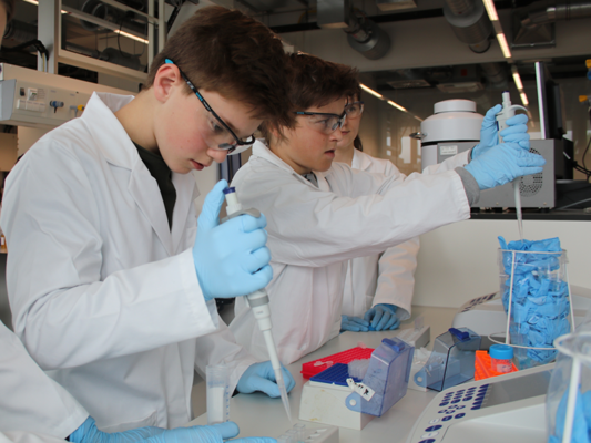Gemeinsam machen wir verschiedene Experimente in unserem eigenen Ausbildungslabor.